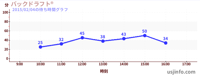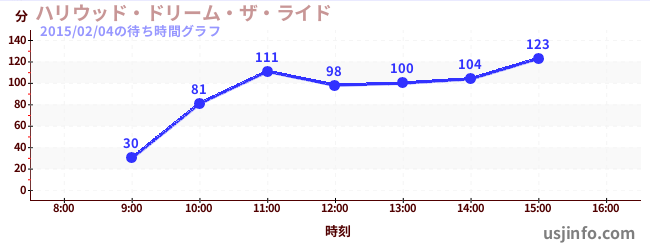 • ハリウッド・ドリーム・ザ・ライド$B$N(B2015年02月04日の待ち時間