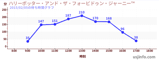 • ハリーポッター・アンド・ザ・フォービドゥン・ジャーニー™$B$N(B2015年02月05日の待ち時間