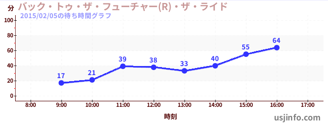• バック・トゥ・ザ・フューチャー(R)・ザ・ライド$B$N(B2015年02月05日の待ち時間