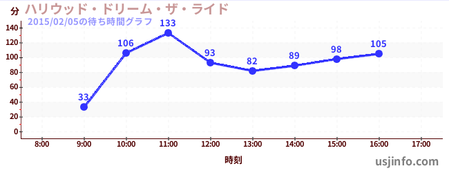 • ハリウッド・ドリーム・ザ・ライド$B$N(B2015年02月05日の待ち時間