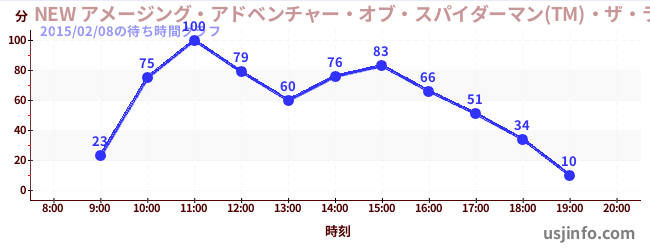 • NEW アメージング・アドベンチャー・オブ・スパイダーマン(TM)・ザ・ライド 4K3D$B$N(B2015年02月08日の待ち時間