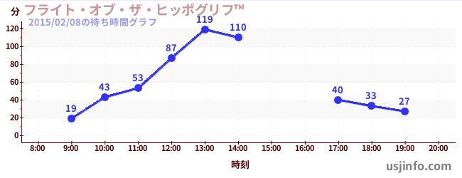 • フライト・オブ・ザ・ヒッポグリフ™$B$N(B2015年02月08日の待ち時間