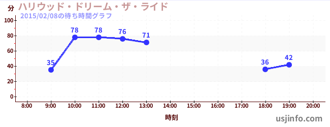 • ハリウッド・ドリーム・ザ・ライド$B$N(B2015年02月08日の待ち時間