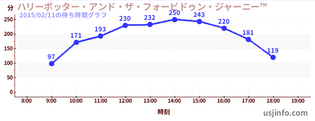 • ハリーポッター・アンド・ザ・フォービドゥン・ジャーニー™$B$N(B2015年02月11日の待ち時間