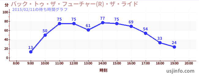 • バック・トゥ・ザ・フューチャー(R)・ザ・ライド$B$N(B2015年02月11日の待ち時間