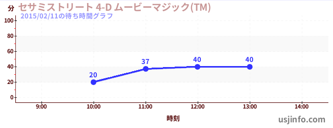 • セサミストリート 4-D ムービーマジック(TM)$B$N(B2015年02月11日の待ち時間