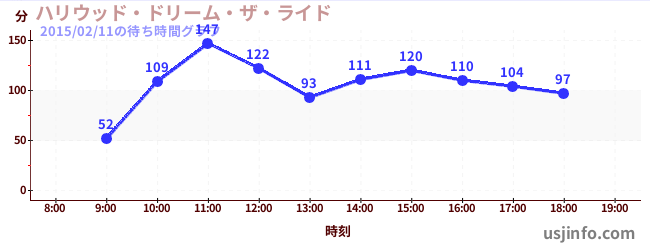 • ハリウッド・ドリーム・ザ・ライド$B$N(B2015年02月11日の待ち時間