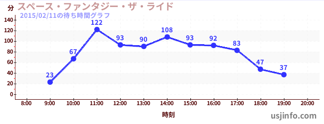 • スペース・ファンタジー・ザ・ライド$B$N(B2015年02月11日の待ち時間