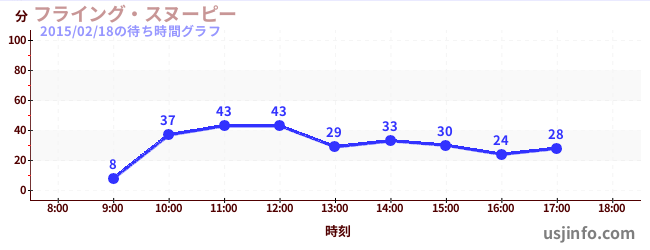 • フライング・スヌーピー$B$N(B2015年02月18日の待ち時間
