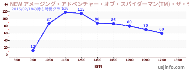 • NEW アメージング・アドベンチャー・オブ・スパイダーマン(TM)・ザ・ライド 4K3D$B$N(B2015年02月18日の待ち時間