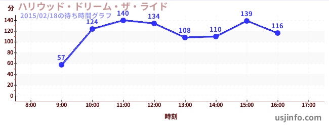 • ハリウッド・ドリーム・ザ・ライド$B$N(B2015年02月18日の待ち時間