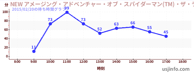 • NEW アメージング・アドベンチャー・オブ・スパイダーマン(TM)・ザ・ライド 4K3D$B$N(B2015年02月20日の待ち時間