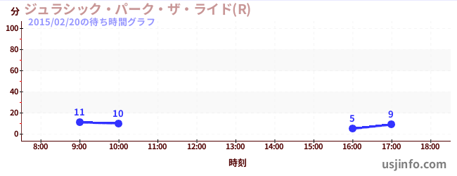• ジュラシック・パーク・ザ・ライド(R)$B$N(B2015年02月20日の待ち時間