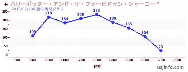 • ハリーポッター・アンド・ザ・フォービドゥン・ジャーニー™$B$N(B2015年02月20日の待ち時間