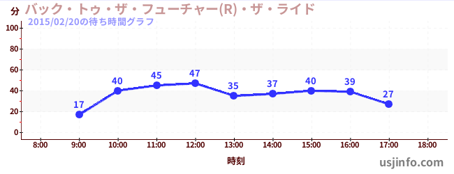 • バック・トゥ・ザ・フューチャー(R)・ザ・ライド$B$N(B2015年02月20日の待ち時間