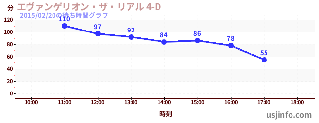 • エヴァンゲリオン・ザ・リアル 4-D$B$N(B2015年02月20日の待ち時間