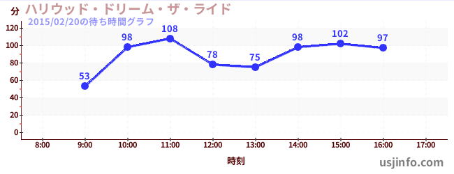 • ハリウッド・ドリーム・ザ・ライド$B$N(B2015年02月20日の待ち時間