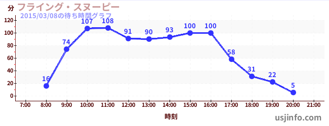 • フライング・スヌーピー$B$N(B2015年03月08日の待ち時間