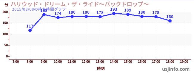 • ハリウッド・ドリーム・ザ・ライド〜バックドロップ〜$B$N(B2015年03月08日の待ち時間