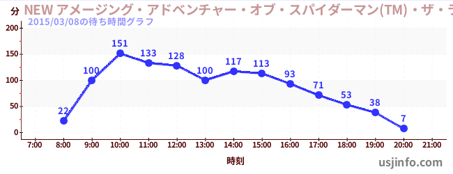 • NEW アメージング・アドベンチャー・オブ・スパイダーマン(TM)・ザ・ライド 4K3D$B$N(B2015年03月08日の待ち時間