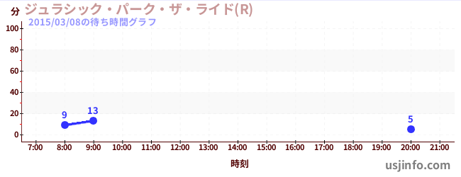 • ジュラシック・パーク・ザ・ライド(R)$B$N(B2015年03月08日の待ち時間