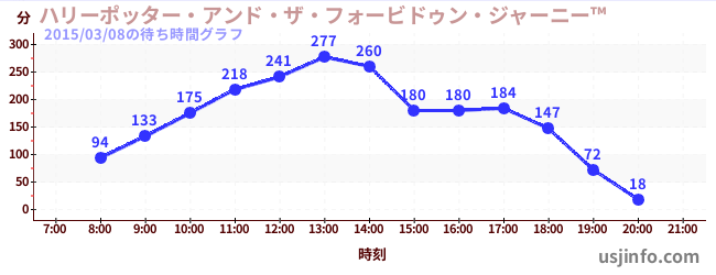 • ハリーポッター・アンド・ザ・フォービドゥン・ジャーニー™$B$N(B2015年03月08日の待ち時間