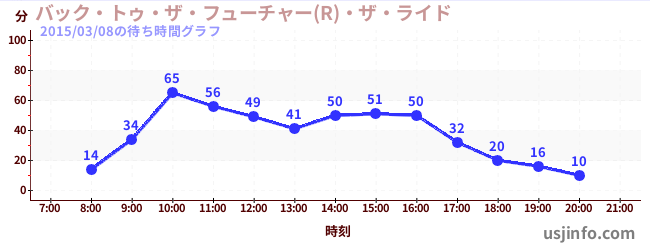 • バック・トゥ・ザ・フューチャー(R)・ザ・ライド$B$N(B2015年03月08日の待ち時間