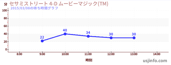 • セサミストリート 4-D ムービーマジック(TM)$B$N(B2015年03月08日の待ち時間