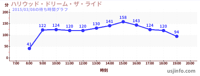 • ハリウッド・ドリーム・ザ・ライド$B$N(B2015年03月08日の待ち時間