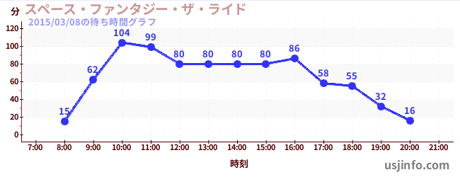 • スペース・ファンタジー・ザ・ライド$B$N(B2015年03月08日の待ち時間