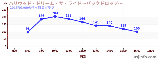 • ハリウッド・ドリーム・ザ・ライド〜バックドロップ〜$B$N(B2015年03月09日の待ち時間