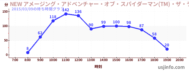 • NEW アメージング・アドベンチャー・オブ・スパイダーマン(TM)・ザ・ライド 4K3D$B$N(B2015年03月09日の待ち時間