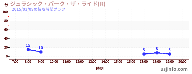 • ジュラシック・パーク・ザ・ライド(R)$B$N(B2015年03月09日の待ち時間