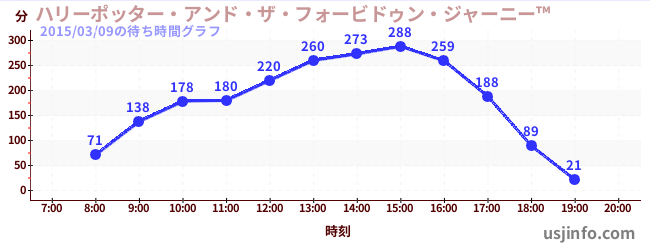 • ハリーポッター・アンド・ザ・フォービドゥン・ジャーニー™$B$N(B2015年03月09日の待ち時間