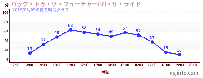 • バック・トゥ・ザ・フューチャー(R)・ザ・ライド$B$N(B2015年03月09日の待ち時間