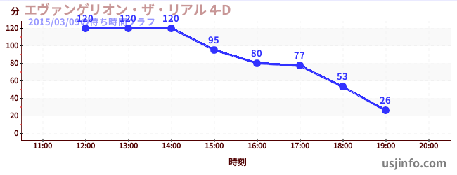 • エヴァンゲリオン・ザ・リアル 4-D$B$N(B2015年03月09日の待ち時間