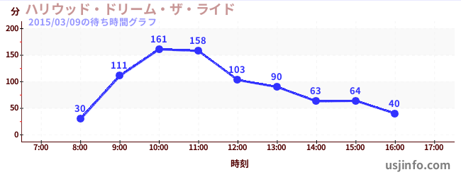 • ハリウッド・ドリーム・ザ・ライド$B$N(B2015年03月09日の待ち時間