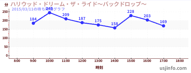 • ハリウッド・ドリーム・ザ・ライド〜バックドロップ〜$B$N(B2015年03月11日の待ち時間