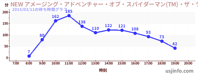 • NEW アメージング・アドベンチャー・オブ・スパイダーマン(TM)・ザ・ライド 4K3D$B$N(B2015年03月11日の待ち時間