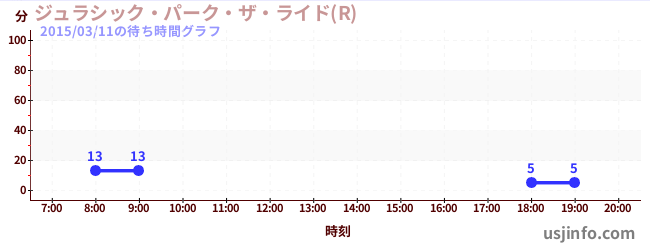 • ジュラシック・パーク・ザ・ライド(R)$B$N(B2015年03月11日の待ち時間