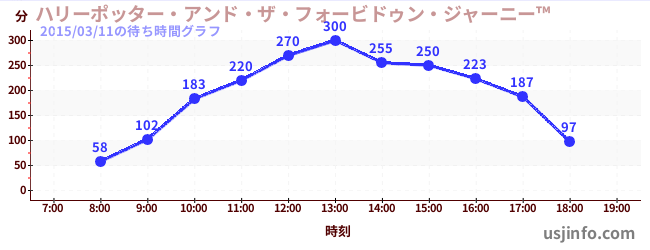 • ハリーポッター・アンド・ザ・フォービドゥン・ジャーニー™$B$N(B2015年03月11日の待ち時間