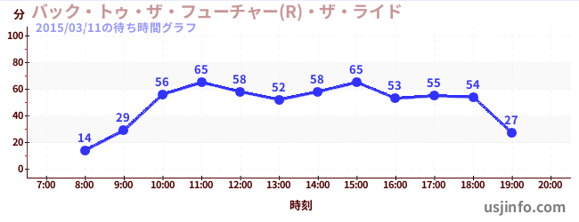 • バック・トゥ・ザ・フューチャー(R)・ザ・ライド$B$N(B2015年03月11日の待ち時間