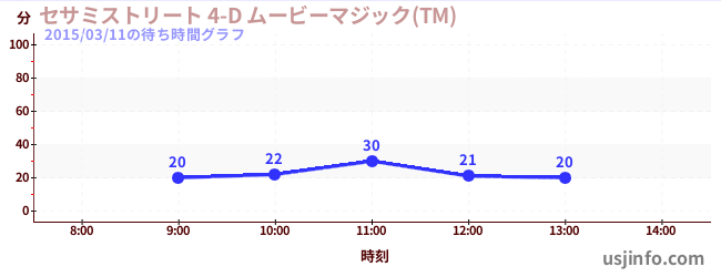 • セサミストリート 4-D ムービーマジック(TM)$B$N(B2015年03月11日の待ち時間