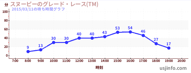 • スヌーピーのグレード・レース(TM)$B$N(B2015年03月11日の待ち時間