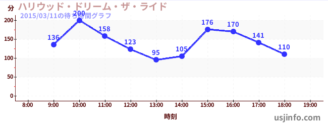 • ハリウッド・ドリーム・ザ・ライド$B$N(B2015年03月11日の待ち時間