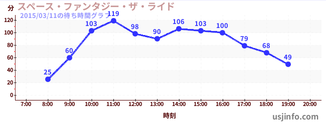 • スペース・ファンタジー・ザ・ライド$B$N(B2015年03月11日の待ち時間