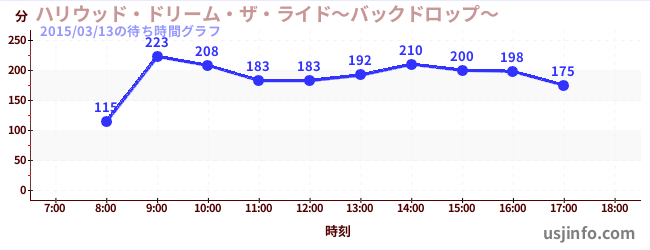 • ハリウッド・ドリーム・ザ・ライド〜バックドロップ〜$B$N(B2015年03月13日の待ち時間
