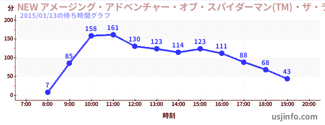 • NEW アメージング・アドベンチャー・オブ・スパイダーマン(TM)・ザ・ライド 4K3D$B$N(B2015年03月13日の待ち時間