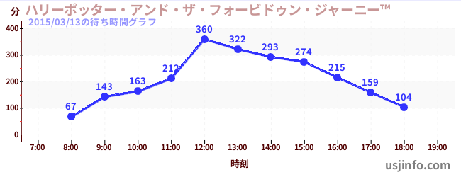 • ハリーポッター・アンド・ザ・フォービドゥン・ジャーニー™$B$N(B2015年03月13日の待ち時間