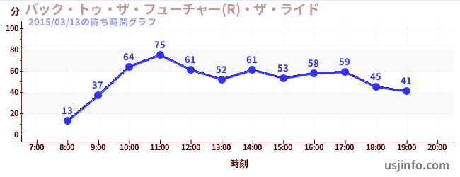 • バック・トゥ・ザ・フューチャー(R)・ザ・ライド$B$N(B2015年03月13日の待ち時間